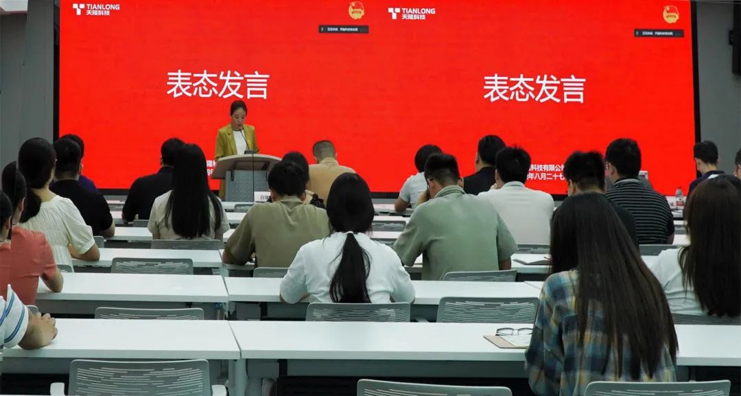 會議選舉結束后,袁瑩同志代表團委委員會作表態發言,她講到,天隆科技團委今后將努力做好以下方面工作:一是找準政治方向,堅定理想信念;二是找準建功舞臺,奏響青春樂章;三是找準服務載體,助力青年成長;四是找準組織定位,筑牢組織基石。同時,她向企業廣大青年提出三點期望:一是希望公司團員青年積極參與到公司團組織的各項活動中來,盡情展示自我,迅速成長;二是希望公司團員青年堅定信念,凝聚蓬勃向上的青年力量,推動公司事業向前發展;三是希望公司團員青年有干事的激情和擔當的精神,以主人翁的意識在本職崗位上建功立業,在推動公司發展中實現個人價值。