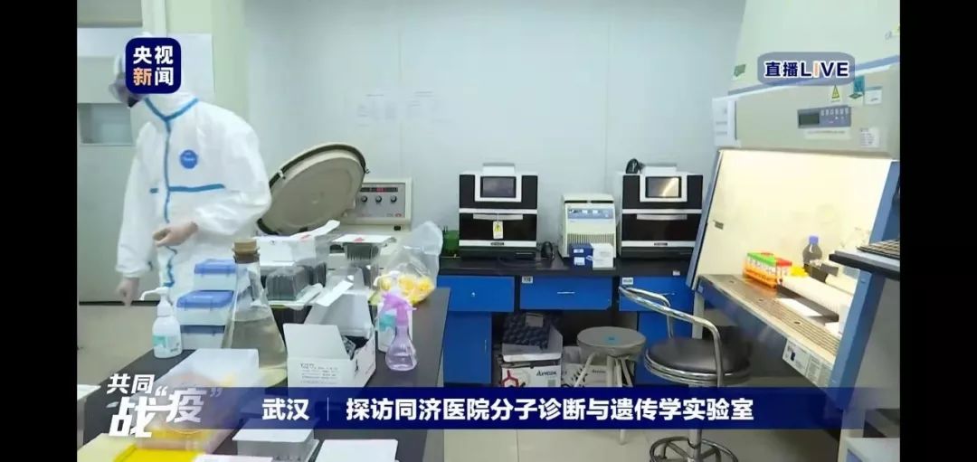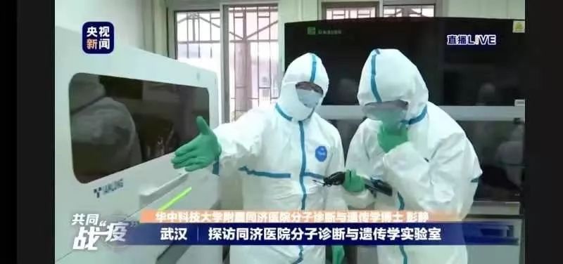 央視新聞拍攝天隆試劑儀器在武漢同濟醫(yī)院的使用情況。