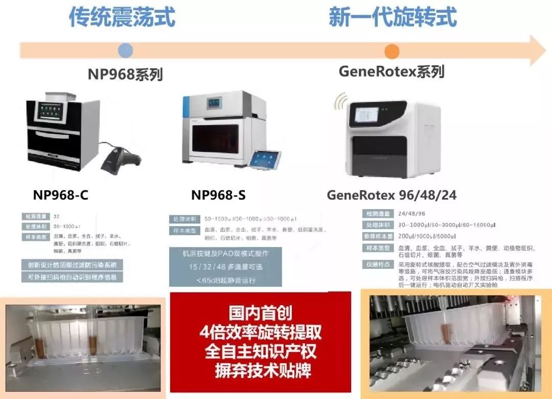 將滅活病毒后的樣本進行核酸提取,產(chǎn)物用于后續(xù)檢測。可采用手工法,也可采用大通量的自動化設(shè)備,如天隆NP968-C核酸提取儀、PANA9600E及PANA9600S全自動化核酸檢測工作站等,更能降低操作人員被感染風險。