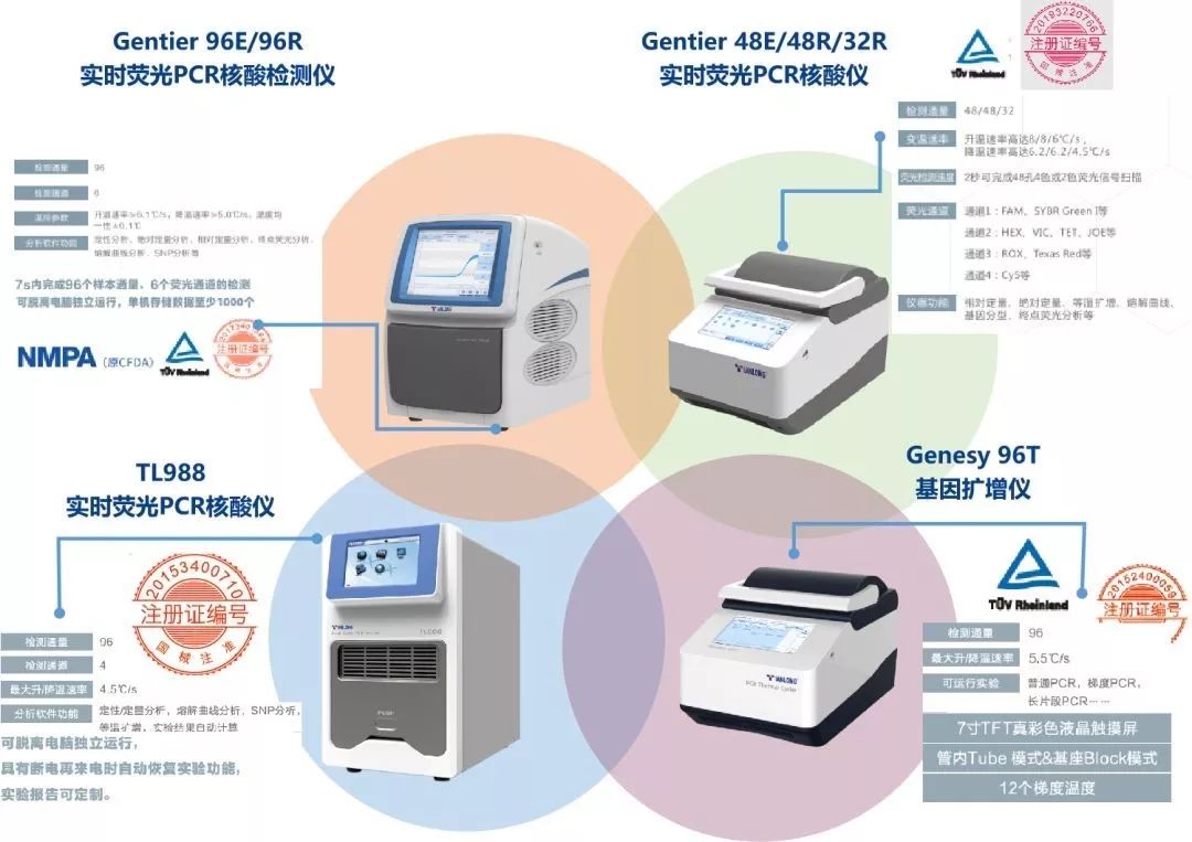 自疫情爆發(fā)后,天隆新型冠狀病毒核酸檢測試劑、實時熒光 PCR 儀、核酸提取儀、全自動核酸檢測工作站已裝備了全國數(shù)百家醫(yī)院和疾控中心,助力疫情防控,天隆產(chǎn)品現(xiàn)已獲得了50余個醫(yī)療器械注冊證、5個CE認證、2個CB認證,10個韓國FDA認證,5個國家重點新產(chǎn)品證書。試劑產(chǎn)品獲三類醫(yī)療器械注冊證26個(含應急審批的埃博拉病毒檢測試劑),其中傳染病類18個,獲證數(shù)量及市場占有率在國內(nèi)排名前列。