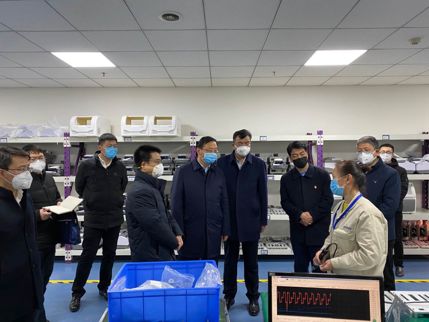 2020年2月8日,西安市市委副書記韓松在經開區區委書記玉蘇甫江·麥麥提等人的陪同下蒞臨我司調研指導疫情防控工作。在我司總經理助理梁佳明先生等人的陪同下,市委副書記韓松一行實地察看了公司的生產車間、產品展覽室等,仔細了解天隆科技目前產品研發、生產及原料采購、安全復工等工作的開展情況。