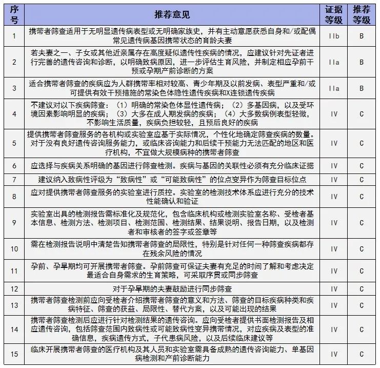 參照國(guó)際相關(guān)指南及共識(shí),數(shù)十位專家學(xué)者經(jīng)充分探討,審慎編寫及多次修改,針對(duì)孕前及孕早期常見隱性單基因遺傳病的攜帶者篩查,最終形成如下15條核心意見。